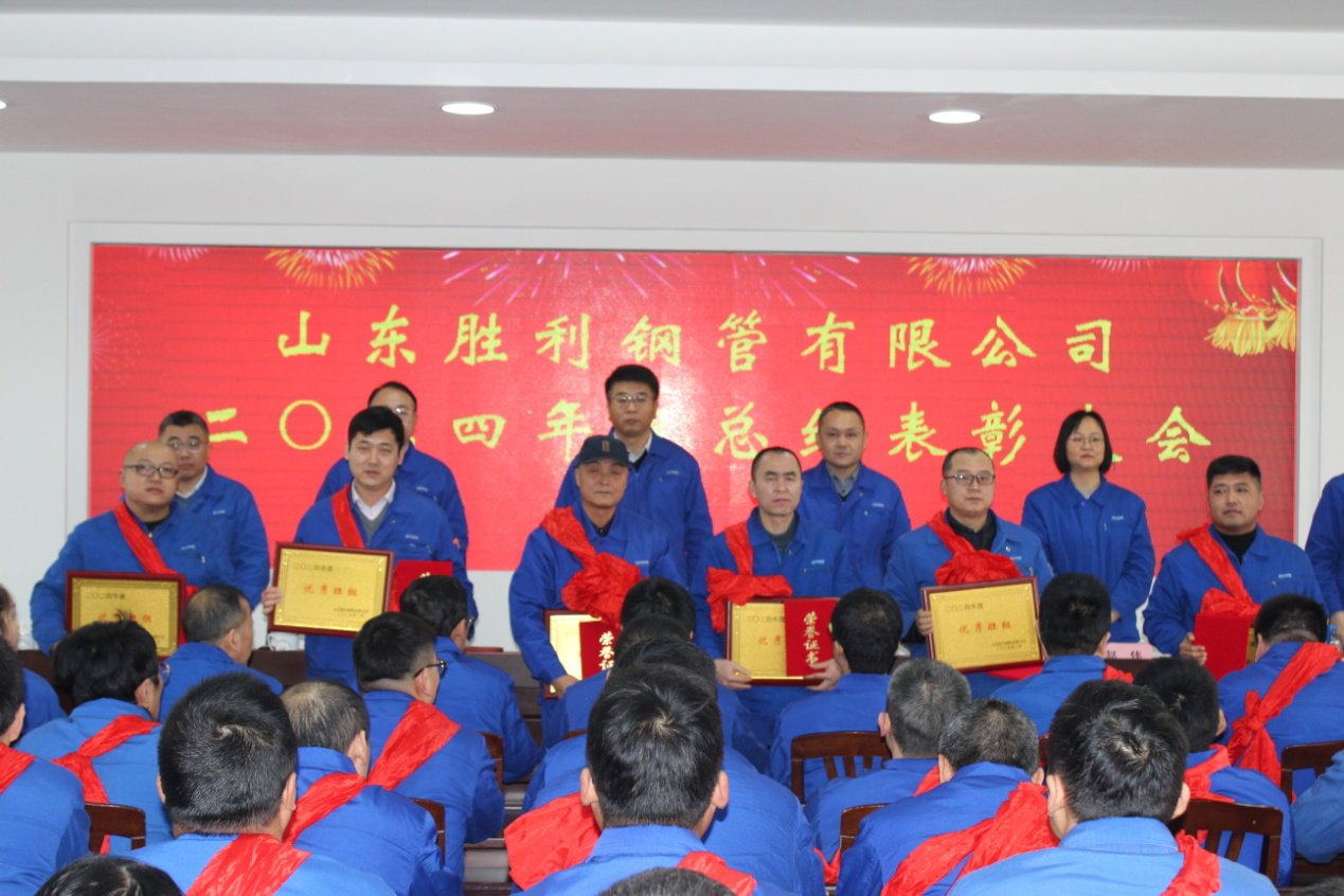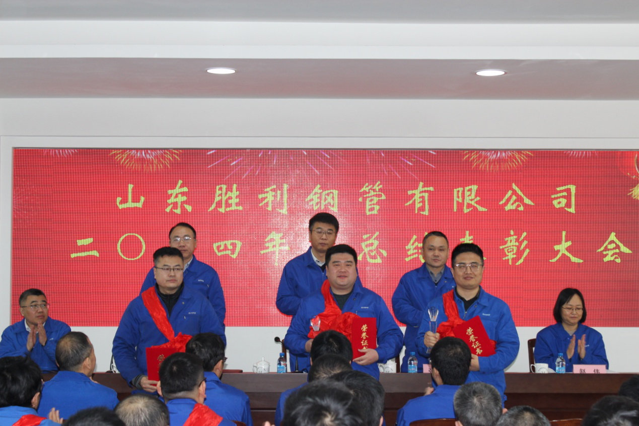 ?2025年1月18日上午,在莊嚴(yán)雄壯的國(guó)歌聲中,山東勝利鋼管有限公司2024年度總結(jié)表彰大會(huì)在集團(tuán)四樓會(huì)議室隆重召開。山東勝利中高層管理人員、員工代表及全體受表彰人員參加了本次會(huì)議。