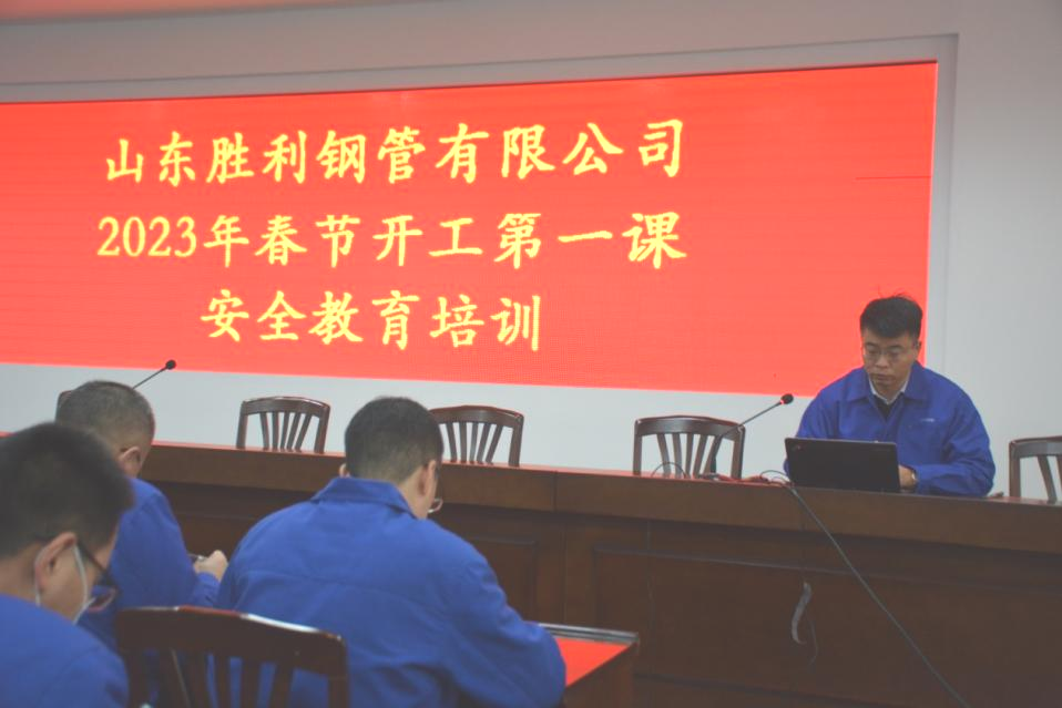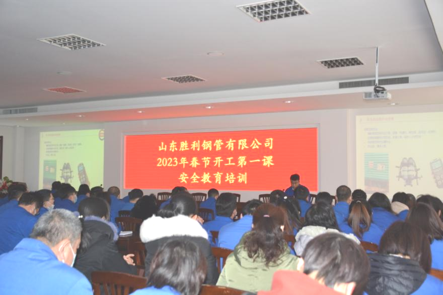 ? 根據(jù)山東省安委會發(fā)《關于扎實落實“開工第一課”制度加強企業(yè)復工復產(chǎn)期間安全防范的通知》(魯安辦字〔2023〕1號)、淄博市安全生產(chǎn)委員會轉發(fā)文、淄博市高新區(qū)安全生產(chǎn)委員會轉發(fā)文及公司相關制度要求,2023年1月30日,春節(jié)假期后上班伊始,山東勝利鋼管有限公司組織全體員工開展2023年春節(jié)“開工第一課”安全培訓教育活動,公司主要負責人、總經(jīng)理趙增強為全體員工授課。
